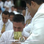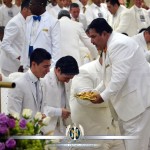 HomeAgenda ApostólicaApóstol de Jesucristo Naasón Joaquín García, preside su primera Santa Cena en Colombia Agenda Apostólica Apóstol de Jesucristo Naasón Joaquín García, preside su primera Santa Cena en Colombia “Mi Señor me ha inspirado realizar el día 14 de febrero del año 2015 una SANTA CONVOCACIÓN, para celebrar la Santa Cena en el extranjero, en donde la Iglesia sigue floreciendo en las 50 naciones conquistadas por la predicación del Evangelio, y participe de la comunión con el Cuerpo y la Sangre de Jesucristo; para que Dios, el Señor Jesucristo, su Hermano Naasón Joaquín y la Iglesia del Señor formemos el cuerpo de Cristo en la unidad perfecta, y habiendo comido del pan y bebido del vino, digamos con toda reverencia espiritual, pero con toda la verdad de su palabra: ¡Somos el cuerpo de Cristo!” —Apóstol de Jesucristo Naasón Joaquín García, Primera Carta Apostólica, 20 de diciembre de 2014 El deseo del Apóstol de Jesucristo de celebrar una Santa Cena en el extranjero –la primera en su Santo Ministerio, a dos meses de la manifestación de su apostolado– tuvo verificativo el sábado 14 de febrero en la colonia Hermosa Provincia en Bello, Antioquia, donde se ubica el templo sede de la Iglesia La Luz del Mundo en la República de Colombia. Estuvieron presentes en esta histórica Santa Convocación las iglesias de los 32 departamentos de Colombia (Antioquia, Bogotá, Santander, Risaralda, Cundinamarca, Amazonas, entre otros), y a nivel internacional acudieron delegados de México –entre ellos el Coro de Hermosa Provincia, de Guadalajara–, Costa Rica y Chile. Haced esto en memoria de mí El hermano D.E. Joel González fue el responsable de presidir el servicio especial. A las 17: 56 horas, el Apóstol de Jesucristo Naasón Joaquín García ingresó al templo. La recepción de la Iglesia fue apoteósica. Las manifestaciones de fe, amor, gratitud y reconocimiento al Siervo de Dios, de parte de la Iglesia de Colombia, fueron innumerables. Miles de jóvenes y visitas tuvieron la oportunidad de conocer por primera vez en su vida a un auténtico Apóstol de Dios. Después de hacer su oración y saludar a la Iglesia, el Apóstol del Señor expresó: “Dios nos hará sentir su presencia. Hoy vamos a celebrar la fiesta más grande de toda la tierra. ¡Cuánto he deseado comer con vosotros esta Pascua!”. Posteriormente, comenzó a relatar el origen de la Santa Cena, desde la liberación de Egipto hasta la institución de la Pascua –que significa un paso a la libertad–, que fue una fiesta que sería celebrada por todas las generaciones de judíos. Vino después la institución de la Santa Cena, que el mismo Jesucristo instituyó. “La Santa Cena –recordó– sería una festividad espiritual cuando el mundo estaba lleno de maldad. Jesucristo dio su vida para pagar lo que nosotros deberíamos haber pagado. Cuando somos invitados a celebrar la muerte del Señor, celebramos la pascua de Jesucristo, que es nuestro paso a la libertad: el día en que Cristo vino a hacer la obra en nosotros y que ahora decimos: yo soy de Cristo y Él es mío. “Se requiere para participar de la Santa Cena una preparación, y que dejemos nuestra vana manera de vivir, porque el que comiere y bebiere de este pan y de este vino indignamente, sin discernir ni entender lo que ello significa, entonces está comiendo y bebiendo juicio para sí. “Dios nos exige, nos pide y nos ordena que antes de participar de este pan y de este vino, halla un reconocimiento. Busquemos al Señor, hermano. ¿Te has consagrado? Es un tiempo de hacer una reflexión. Estaremos ante la balanza de Dios. Llegaremos desnudos delante de él y nuestra conciencia nos va a recordar si somos o no dignos. Agachemos nuestra cabeza y presentémonos ante Dios. Que él vea nuestra vida si somos dignos de participar de esta bendición, de recordar la muerte santa y el sacrificio sagrado de Cristo”. Oración intercesora Antes de participar en el banquete espiritual, el Apóstol de Jesucristo elevó su oración intercesora por la Iglesia: “Bendito Padre que estás en el Cielo, Tú me has puesto ante tu Iglesia y me has dado un hermoso Ministerio: ¡Me has dado el Ministerio de la Reconciliación! “Hoy vengo ante ti porque sé que este Pueblo te ha fallado, y vengo a pedirte que te compadezcas de nosotros. Perdona a tu Iglesia, dales una oportunidad, permite que participen libremente de este pan y de esta copa, y si ellos te deben algo, y si alguno de ellos te ha fallado y no es digno de tu perdón, ¡aquí estoy Señor! Ponlo en mi cuenta y has que yo pague por ellos. Al inicio de mi Ministerio, pongo mi persona, mi vida delante de ellos. Cóbrate conmigo, pero deja libre a tu pueblo, para que valorando esta intervención sepan conducirse con toda rectitud en el nombre glorioso de tu hijo amado Jesucristo. “Por la autoridad que Dios ha depositado en mí para que yo pueda bendecir este pan y este vino, que van a simbolizar el cuerpo y la sangre del Señor, volváis otra vez a estar en comunión con Dios y renovar el pacto que hay entre él y tú, Iglesia del Señor. Repartición del pan y del vino A las 18:41 horas, después de la oración intercesora, el Apóstol de Jesucristo envió a los pastores y diáconos a repartir el pan al interior del templo, las calles aledañas y la Viña de Jezrrel, donde se concentró la juventud de la Iglesia. Minutos después, el Apóstol Naasón Joaquín encaminó sus pasos a la Viña de Jezrrel, donde personalmente repartió el pan entre algunos jóvenes. Grande alegría se desbordó entre la juventud de la Iglesia, quien no había tenido una experiencia semejante en su vida. Hace 21 años –en enero de 1994– fue la última ocasión que un Apóstol de Jesucristo visitó Colombia. Esta generación aún no había nacido. En el mismo espacio, dirigió unas palabras a los más de cinco mil jóvenes y señoritas reunidos. El consejo fue categórico: renovar la invitación para