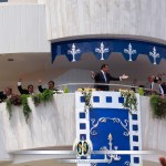 HomeAgenda ApostólicaEl Apóstol de Jesucristo da la Bienvenida a las delegaciones procedentes de todo el mundo Agenda Apostólica El Apóstol de Jesucristo da la Bienvenida a las delegaciones procedentes de todo el mundo Desde la explanada del majestuoso templo sede de la Iglesia la Luz del Mundo, el 9 de agosto de 2015, el Apóstol de Jesucristo Naasón Joaquín García, dio la bienvenida a más de 500 mil cristianos, delegados procedentes de 53 naciones que se dieron cita en la septuagésima séptima Convocación anual, para participar de la Santa Cena instituida por Jesucristo. Desde las primeras horas del día se vivió un ambiente de fiesta espiritual en las colonias Hermosa Provincia, Bethel y Maestro Aarón Joaquín, las tres principales subsedes de la Santa Convocación 2015. Los orfeones nacionales e internacionales entonaban alabanzas en más de siete idiomas, teniendo una participación ferviente y activa mediante sus cánticos de adoración a Dios y de reconocimiento a la Elección Apostólica, provocando el regocijo espiritual de los asistentes que colmaron las calles adyacentes a los templos situados en las subsedes en donde se congregan los invitados a la mesa del Señor. Las autoridades civiles dan la bienvenida a la iglesia La agenda de bienvenida dio inicio con la participación de las autoridades de los tres niveles de gobierno: federales, estatales y municipales, presentes en la colonia Hermosa Provincia; quienes con la autoridad de su investidura, llevaron a cabo un acto civil de bienvenida a los delegados procedentes de 53 países de los cinco continentes, África, América, Asia, Europa y Oceanía, donde la Iglesia La Luz del Mundo, gracias a la labor de evangelización que se realiza por todo el mundo, ha experimentado un importante crecimiento espiritual El Lic. Ramiro Hernández García, presidente municipal de Guadalajara dijo a los asistentes a la Santa Convocación: “Guadalajara es reconocida como una de las ciudades que a nivel mundial se caracteriza por su hospitalidad y respeto a las libertades. Para los tapatíos, la visita de ustedes es una gran oportunidad para refrendar lo que se ha venido construyendo a lo largo de tantos años, por muchas generaciones: la hospitalidad, y la Iglesia La Luz del Mundo es ese ejemplo”. Por su parte, Humberto Villagrán Paz, director del Ministerio de Culto de la Secretaría de Gobernación, tras dar la bienvenida a los asistentes a nombre del presidente Enrique Peña Nieto, reconoció que la Iglesia La Luz del Mundo es una institución seria y con gran responsabilidad, la cual se encuentra debidamente constituida como Asociación Religiosa, que se desarrolla en el ámbito académico, cultural y religioso día a día, sean bienvenidos”, -concluyó. A su vez el Licenciado Jaime Rodríguez Calderón, gobernador electo del Estado de Nuevo León, también elogió a la iglesia en el comportamiento de los congregados, destacando: “cuando yo entré a su primera calle, me sentí feliz como la gente que está sentada y observando tranquila, con la paz y bondad de las personas generosas que necesita México para restablecer el tejido social…” El ingeniero Iván Urrutia, quien coordinaba el desarrollo del evento les agradeció sus palabras y asistencia, a nombre de la iglesia. El apóstol de Jesucristo da la bienvenida a su iglesia Enseguida el Apóstol Naasón Joaquín García, se presentó ante la multitud diciendo, “Honorable Iglesia de Jesucristo, Iglesia del Dios vivo, Columna y Apoyo de la Verdad, La Luz del Mundo, asistentes a la septuagésima séptima Convocación anual, permítanme dirigirme a las distinguidas personalidades que nos honran con su presencia, de los tres niveles del Estado mexicano.” Les gradeció como Apóstol y Presidente internacional de la Iglesia La Luz del Mundo, las facilidades otorgadas para la realización de la Santa Convocación, evento que les dijo, -se desarrolla en un clima de respeto y fraternidad, símbolos de la unidad inquebrantable en que vive la iglesia y de acuerdo a nuestros principios cristianos y en acatamiento al mandato bíblico de obedecer y orar por las autoridades que nos gobiernan, enunciado en la epístola a los Romanos 13:1, refrendo mi compromiso de seguir orando por las autoridades del gobierno de todos los 53 países en donde la Iglesia convive en un clima de respeto y armonía y que aún siendo miles, de diferentes razas y lenguas, conforman un cuerpo que se une en un mismo propósito, conmemorar la muerte del Señor Jesucristo. Reiteró que la iglesia seguirá orando por sus gobernantes, a fin que Dios les permita realizar con éxito, las responsabilidades a su cargo. Posteriormente y con denuedo saludó a su iglesia amada: Que la paz y la gracia que es en Cristo Jesús, more en sus corazones, han sido casi ocho meses y quería verles, abrazarles, y decirles no estáis solos, no estáis desamparada, Cristo está con nosotros… Aquel 08 de diciembre quería decirles quédense, pero no podía, porque tenían que retornar a sus lugares, hoy te quiero decir Iglesia amada, Cristo siempre ha estado con nosotros. La iglesia respondió con júbilo y con la certeza que así. Lo ratificó el apóstol Naasón al decir que si está uno alegre, entone alabanzas a nuestro Dios todo poderoso. Para ello pidió a los congregados que con entusiasmo alabaran a Dios con el himno: “Bendito sea el Rey de Reyes”, alabanza en la que se da Gloria a Jesucristo, porque es digno de adoración, venimos a conmemorar su muerte, y nos permitió tener comunión con Dios. La iglesia se fortalecía en confianza, percibiendo la seguridad y verdad con que el Varón de Dios Naasón Joaquín afirmaba: “Cristo me ha elegido para que le represente y para que guíe a la iglesia, Dios siempre ha puesto en la Iglesia quien le represente, el dueño de esta Iglesia es Jesucristo, nosotros no vemos a un hombre, vemos al mismo Cristo… Dios me ha mandado en nombre de Cristo, te digo Iglesia del