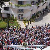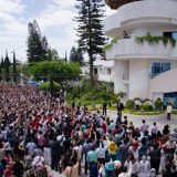 El Apóstol de Jesucristo Naasón Joaquín, saluda a la Iglesia de Guadalajara, desde el balcón de la Casa Grande